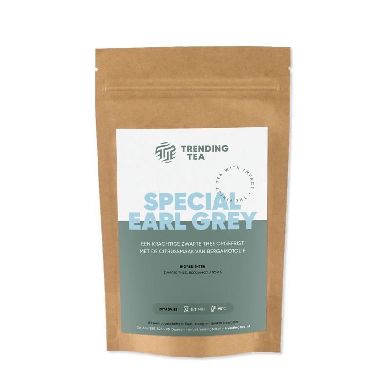 Een krachtige zwarte thee opgefrist met de citrussmaak van bergamotolie.